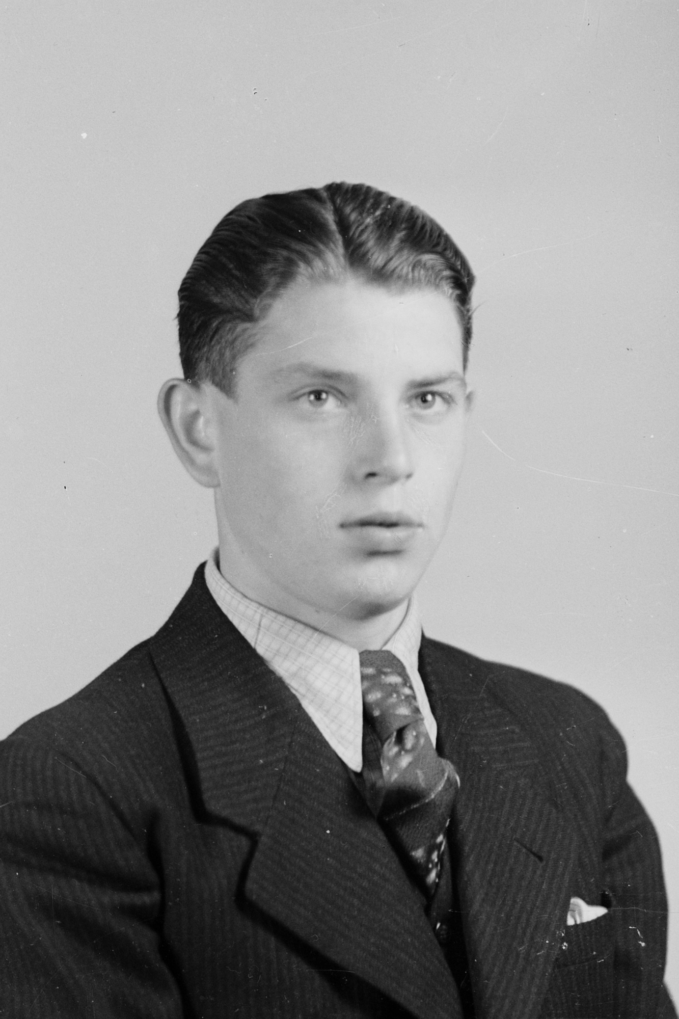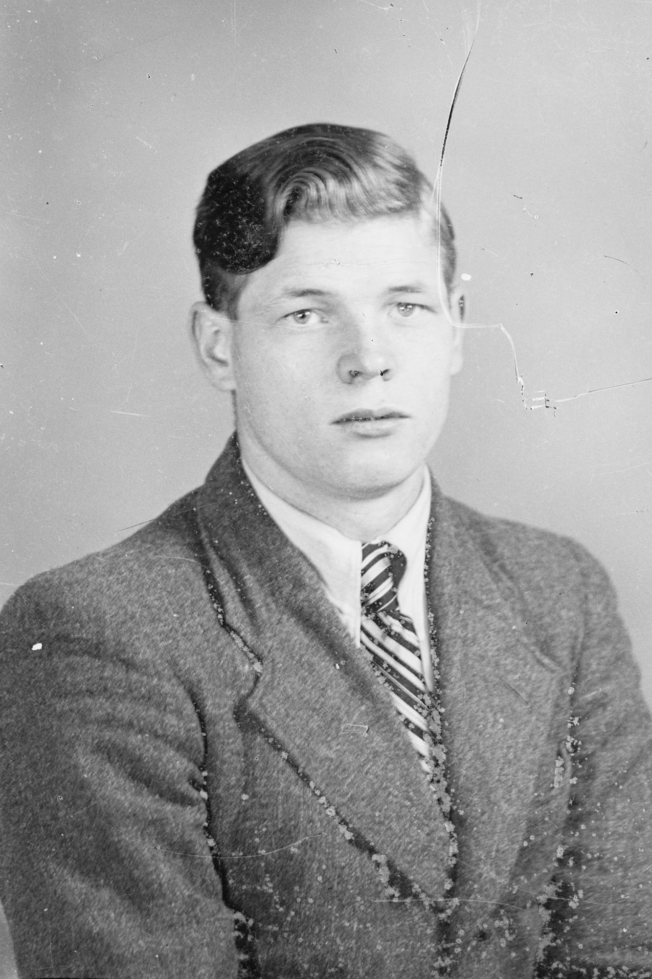 Ein Konvolut von 67 „Hausmarke“-Glasnegativen im Format 6 x 9 Zentimeter der Firma Photo-Hahne in Leipzig. Die Bilder, verteilt auf sieben Schachteln (siehe Foto unten), müssen nach 1933 entstanden sein, da einige der Porträtierten Abzeichen mit Hakenkreuzen tragen. Die Jahreszahl 1938 im Titel ist beliebig gewählt. Unklar ist, um wen es sich bei den Porträtierten handelt – es könnten die Kunden eines Fotografen sein, die sich für Passbilder ablichten ließen.